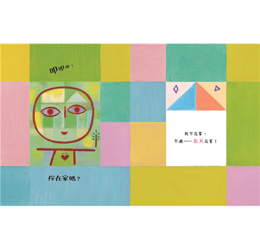 金鼎獎作家林世仁以國寶級畫家趙國宗老師的油畫作品〈日日是好日〉為靈感發想,用天母的春夏秋冬變化為主軸,分別描繪白天與夜晚的自然景色與城市風情,透過四季問答的詩句,呈現出天母的特色、視覺與氣味。原畫由格子組成,每一格都代表了天母的元素與意象,配合詩句,趙老師把原畫的格框一一拆解、重組、配色,巧妙的將一幅現代簡約的油畫變身成一本美麗的童詩繪本。