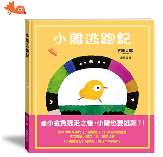 在《小雞逃跑記》裡,五味太郎貼切刻畫出孩子想自主向外探索的心情,且每個歷險歸來後的孩子,都值得擁有爸爸、媽媽一個緊緊的擁抱!閱讀時,可以仔細觀察插圖,雞爸爸、雞媽媽不在時,是誰在外陪著小雞一起逃跑呢?也千萬別錯過書腰的背面,五味太郎要與讀者分享,他小時候在祭典發生的一段有趣「雞」緣呢!