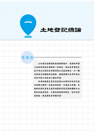 本書採雙色印刷,答題關鍵字以藍色標記,利用黑白藍三種色調,使用圖表整理繁雜內文,進行系統性學習。多一種顏色,多一道區隔,就是要使土地法規之體系在讀者腦海中清晰建構。