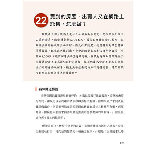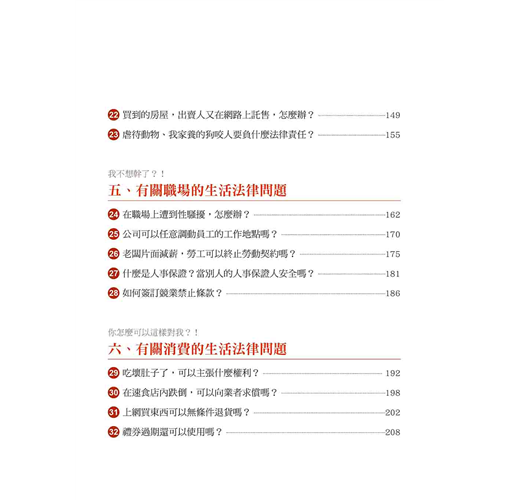 每篇皆利用實際故事,帶您了解如何解決棘手的生活法律,