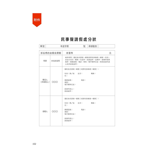 向大家介紹法律常識是一件苦差事,因為法律本來就是非常專業的學門,敘述時稍不小心就會滿口專業用語,常讓學習的朋友有聽沒有懂,為了避免這種情況發生,筆者想到最近商業界非常流行的「故事行銷」,所以就用故事案例做開頭讓大家能感同身受,在解析案例時,文字敘述上口語化,遇有專業名詞便稍加解釋,為求閱讀順暢也盡量不在本文引用法條,但會在文章之後載明相關法條以方便大家對照引用;此外,筆者執業已20年,在實際處理案件的時候,累積了許多處理案件的「眉角」(台語),因此在案例解析之後用「律師叮嚀」的方式提醒大家實際處理時應該注意的事項,又怕大家看完案例文章後見樹不見林,所以在用圖示的方式總結整篇文章的整體架構。總之,就是要無所不用其極來加強本書的吸睛力!