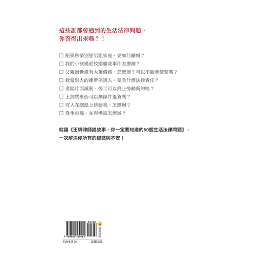 本書作者具有台灣及的律師證照、法學博士的學歷,執業近30年的資歷,對於一般生活法律案件的處理有豐富的經驗。書中的50個生活法律問題都是作者實際處理的案例,是您面對法律問題時,最佳的參考!