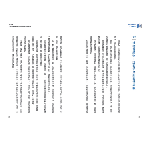 書對我來說一直是很特別的存在,我的人生不能沒有書。書點綴我的人生,給予我許多觀念上的啟發。