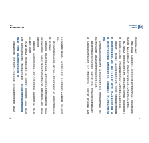 「我本身是年閱讀量一千冊的全職閱讀者,此書指導的閱讀方法也是我慣用的方式,相當值得推薦!」──愛瑞克,《內在原力》作者、TMBA共同創辦人