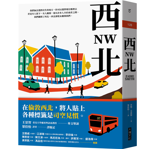 在獲獎無數的《白牙》、《論美》之後,莎娣.史密斯採取全新實驗式手法進行敘事。她曾在訪談中提及對固定形式的易厭,本書她轉換敘事風格,呈現四個截然不同、出身西北的小人物:混亂且優柔寡斷的黎亞、壓抑而追求秩序的娜塔莉、往下墮落、悲觀導向的奈森,以及正從谷底攀爬而上的菲立克斯。在《西北》,方向和時間流向的定義也被顛覆。當你以為正在往上,其實正在落下;以為走往光明面,卻逐漸進入黑暗。她將西北地區設為錨點,安排角色離開、滯留、重返或游移其中,時而嘗試突破,前往一個更好或更糟的地方。她以隱晦且冷靜的聲音訴說現代社會平和表面下的躁動、憤怒與惶然不安。在她筆下,所謂倫敦,形象躍然紙上。