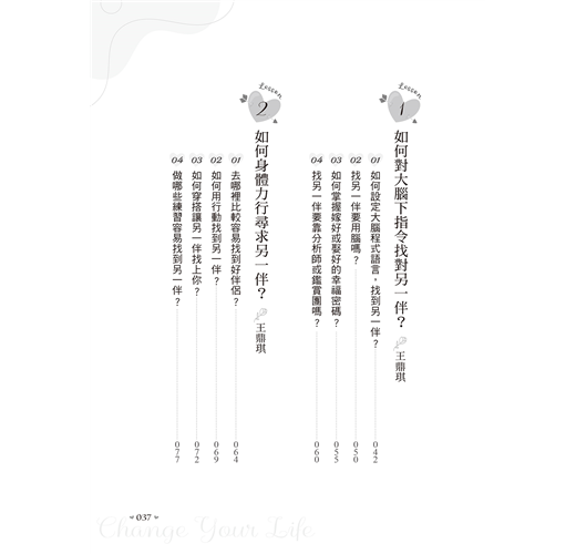 從Why(為什麼要找到好伴侶?)到What(好伴侶的條件是什麼?)再到How(如何找到好伴侶?),完整教給讀者8堂尋LOVE課!