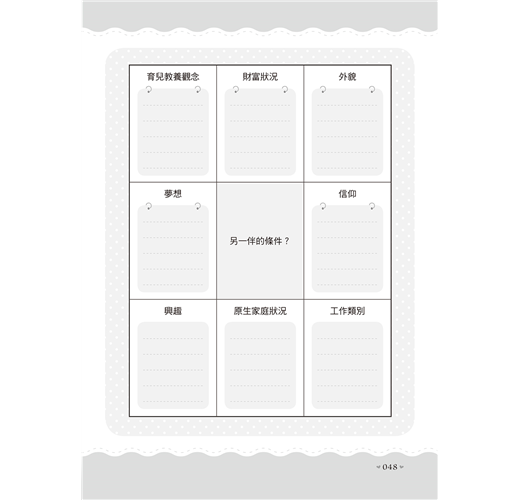 □ 整理心中對於好伴侶的想法,進而可以更清楚地朝著對的人邁進