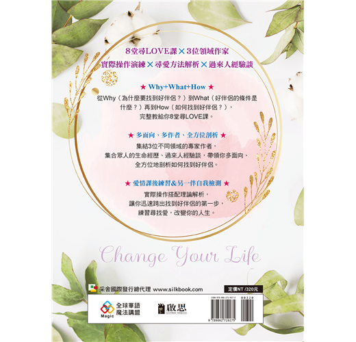改變人生系列書籍,已出版《改變人生的5個方法》(創見文化出版)、《找到好伴侶:改變人生的第6個方法》(本書,啟思出版),接下來也將持續推出更多改變人生的祕法,翻轉生命永遠不嫌晚,敬請期待!