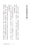 本書透過「你快樂嗎?」、「什麼是苦?」、「如何面對生死與聚散」、「找到幸福的起點」、「轉化主觀的感受」、「得到真正的快樂」六大主題探索自我,幫助我們看清苦樂的本質,找到自在面對人生苦樂的方法。