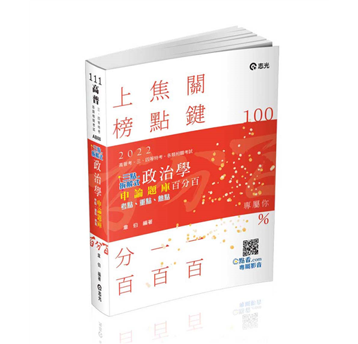 ※本書特色●考點─收錄最全面全書共分24章節,完整收錄20年來約187個政治學考點,分點突破,考試零死角。●重點─考情落點全破解特別整理91~110年章節落點,並搭配106~110年考情趨勢分析,輕鬆掌握出題型態與必考重點。●熱點─目錄索引再進化特設106~110年國考試題索引表,搜索擬答,簡單、好上手,迅速搜尋不卡關。 ★《拆解式政治學》、《公職政治學字典》及《拆解政治學歷史年表》相互呼應,完整體驗系統化學習★