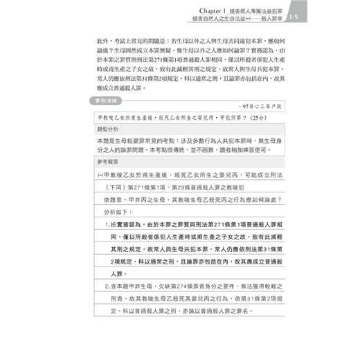在接下來這一年,除了希望這本書能夠幫助讀者們揭開我國刑法分則的面紗,摸索出國考在刑法分則題目上的解題架構,建立起自己的上榜模板,並順利上榜外,也希望讀者們在準備國考的路上,不要忘記也要讓自己好好的生活,享受人生,盡量讓自己有著快樂的心情,隨時注意自己的身心健康,畢竟考國考及工作的目的是為了能讓自己生活,而不是讓考國考及工作成為生活的目的。