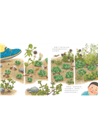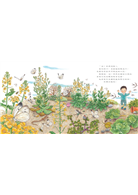 陳麗雅的畫風細膩生動,富有童趣,為了呈現豐富的層次,她選用國畫專用的京和紙來畫這本書,先以小筆勾勒輪廓,再一層層堆疊上色,光是一片葉子就要畫個好幾天,一棵高麗菜甚至要花幾個星期來畫。另外,她在畫面上安排了非常多的細節與巧思,能幫助孩子觀察大自然與周遭環境,像是高麗菜園裡常見的紋白蝶,注意看,還可以在畫面上找到蝶產卵、青蟲、結蛹到變成蝴蝶的成長過程。