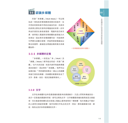 本書除了多媒體的各項知識外,也強調軟體實作,並以多樣化的範例來進行講解,提升讀者對多媒體創作的興趣,同時引導讀者將所學會的相關技巧,應用到生活化的創作之中。書中也加入了豐富圖片及示意圖,透過示意圖或表格的整理,更容易理解書中傳達的知識。