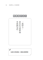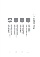 見面說的第一句話及最後一句話、找不到話題及無話可說時、應對負面話題及意見不同時、與長輩或不喜歡的主管相處時……
