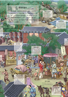 這套《用全景地圖學中國史》分上、下兩冊,248頁的篇幅。書中用數百幅細膩、生動的全景圖重現了每一個朝代的歷史場景,每一幅圖都深藏著歷史風雲變遷,有金戈鐵馬、朝野大事,也有婚喪嫁娶、市井民生,讓孩子身臨其境般感受歷史、體驗歷史。