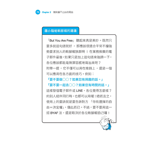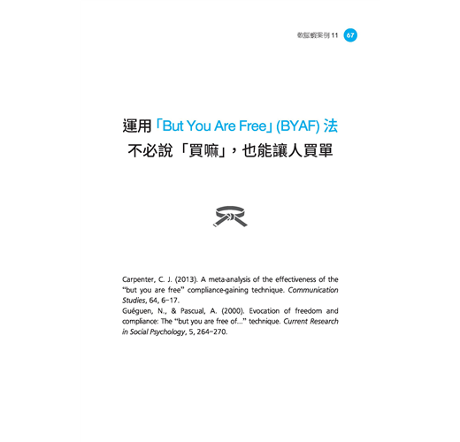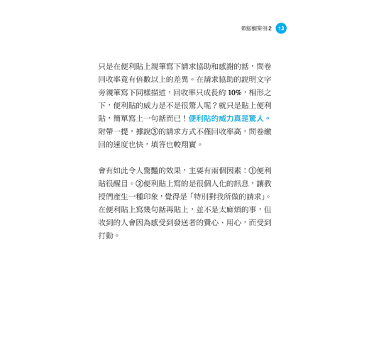 日本廣告文案鬼才、「論文狂」川上徹也,從社會心理學、行為經濟學、認知神經科學等行為科學領域的經典案例與最新研究中,為擁有內向特質的你嚴選46個技巧,幫助你痛快解決職場上的行銷、企畫、文案、議價等難題。例如: