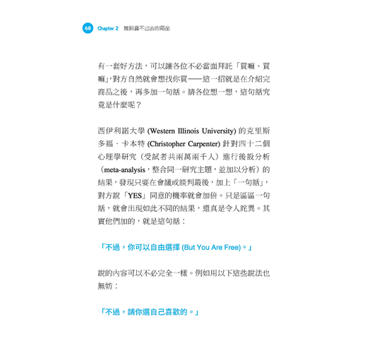 只要善用本書的46個技巧,你將擁有「以柔克剛」的力量,不必強硬地主張己見,也能引導對方主動做出自己想要的選擇,想都不想就說YES!