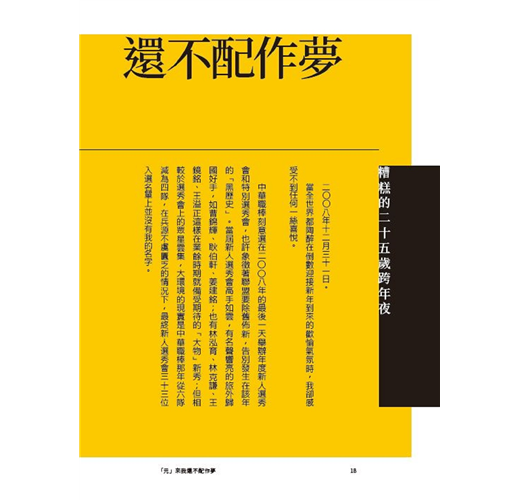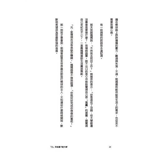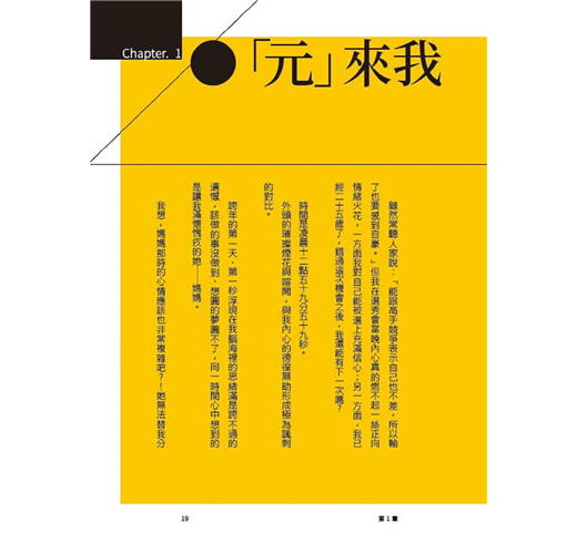 看著頒獎典禮上,大元舉起手中年度東山再起的獎座,霸氣宣言讓電視機前的我深受感動,要花費多大的力氣才能受到大家肯定?要承受多少磨難才能走到現在?好多疑問,在這本書裡,都有答案。
