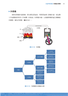 此時進氣門和排氣門都關閉,火星塞適時發出高壓電火花,將溫度很高的混合氣點燃,使其燃燒爆炸產生巨大的壓力,將活塞從上死點推至下死點,進而推動曲軸做功產生動力(圖2-3-3)。
