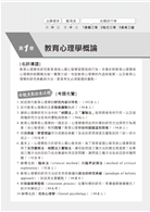 不僅在各章分析出題頻率、難易程度外,千華特聘的名師更以自身專業以及從事教育的經驗角度,鑽研各大學教育系所考題、新聞時事等,從中精心挑選重點中的重點,編錄於書中,並彙整近年(105~110年)的高普、地特、原民、身障等試題的落點統計,讓你可以在浩瀚無垠的教育心理學的科目中(像是大量學術理論、學科學派、重要人物、名詞解釋等),找出最精準的命題方向,還在苦苦從茫茫學海中找尋出題線索嗎?使用這本江湖秘笈,讓考題命中成為你的命中注定!