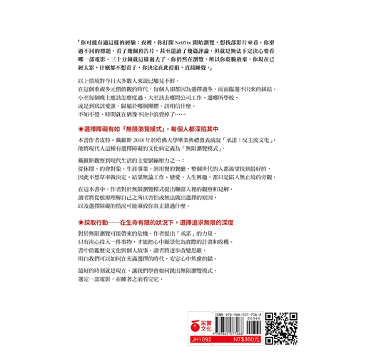 「《選擇障礙世代》是一本相當有權威的書,講述了人們處於關注金錢和恐懼的膚淺文化中,『承諾』這種反主流文化的道德行為。皮特戴維斯的智慧之深和知識之廣令人吃驚,對於行為準則和民主的強大願景更是令人信服。」──康乃爾.韋斯特(Cornel West),哈佛大學哲學教授