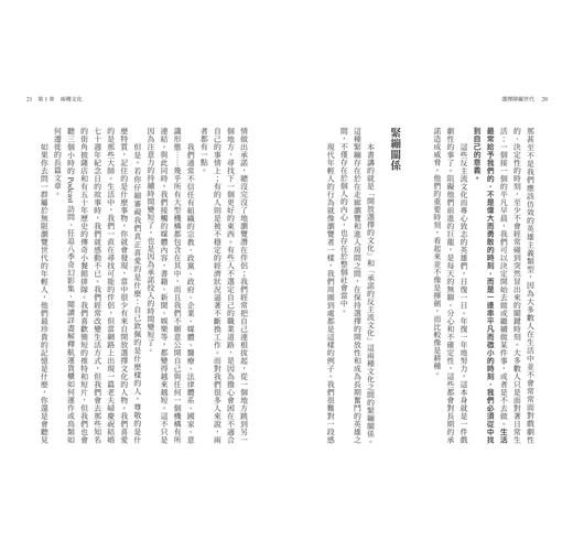 「在一個注意力短暫、選擇無限的時代中,如何找回意義、目的,以及持久投入的滿足感,這是個引人入勝的議題。這本書是二○一八年哈佛大學畢業典禮演講的放大版。皮特.戴維斯向他這一代人──以及我們所有人提出挑戰,呼籲人們與真正重要的團體和關係重新建立連結,建設一個更美好的世界。」──德魯.吉爾平.福斯特(Drew Gilpin Faust),哈佛大學前校長
