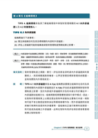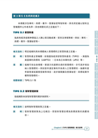 本書主要分為「TIPS條文說明」與「TIPS導入步驟」,除逐條解析TIPS條文、輔以實務案例說明外,並從「導入準備期」、「制度建置期」與「驗證準備期」等導入前中後三階段,循序引導企業組織運用 TIPS 規劃、建立有系統的智財管理運作機制。