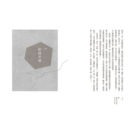 我也終於體認,由於自己缺乏主、客觀的各種條件,難以馳騁於製作電視劇這條既複雜又崎嶇的不歸路,一切與虛名、銀錢有關的遊戲,對我來說都是注定敗亡的場場肉搏戰。既然如此,我就安身立命於專心製作《點燈》節目。因為這個節目,讓聖嚴師父與我締結了此生難得的師徒之緣;因為這個節目,我才得以真正去開拓、去照亮那些曾經迷惘、踟躕的人們的人生道路啊!