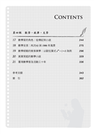 《鸚鵡螺數學叢書》總序 緒言 第一輯遺聞軼事的趣味 1清水變雞湯:遺聞軼事的歷史趣味 附錄《畢氏定理四千年》中譯序 2阿基米德vs.阿波羅尼斯:球體積公式如何發現? 3哪一個圓面積公式「討喜」? 4棋盤上的穀粒:數大之奇 附錄一《算法少女》的富翁米粒問題 附錄二林壽福老師〈評論《睡蓮方程式》〉摘錄 5阿基米德之死:傳奇故事大家說 第二輯如何說數學故事? 6說算談天話論證:說算者的故事怎麼說? 7如何說數學故事?推薦負數史的一個版本 8解析幾何之為用:以橢圓平行弦中點共線為例 9數學家的另類故事:介紹《窺探天...