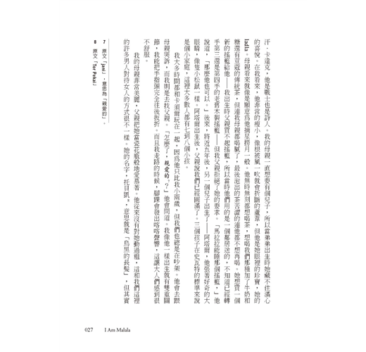 全書收錄關於馬拉拉的全彩照片33張、與馬拉拉手稿日記稿2張。