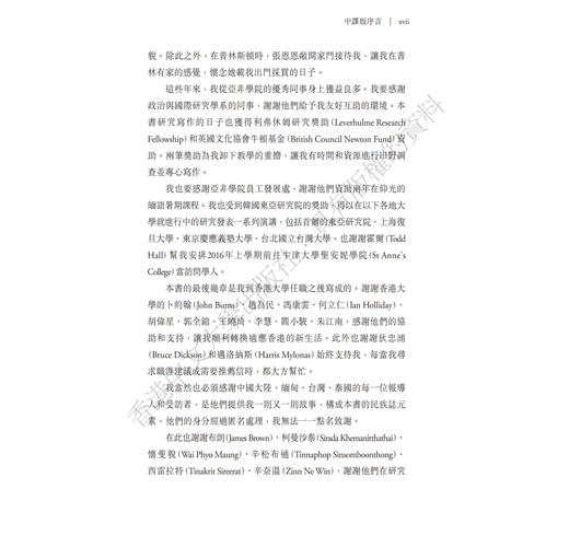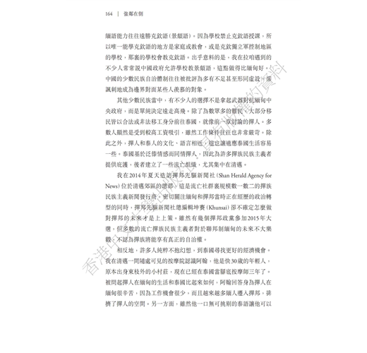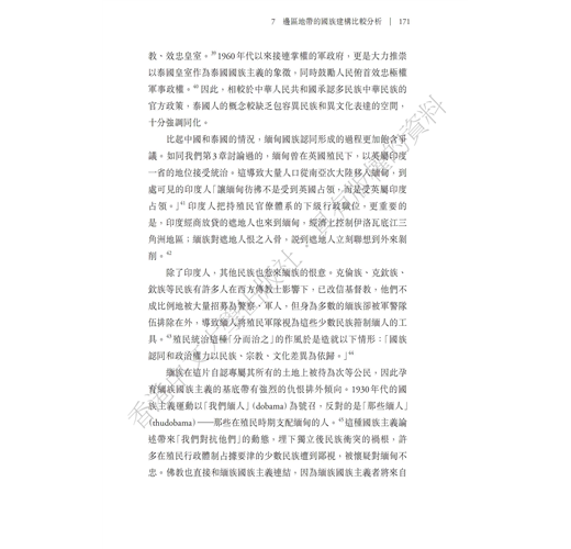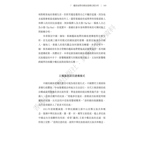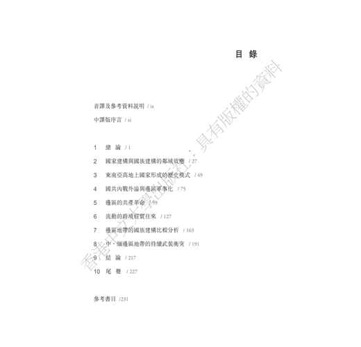 本書講述緬甸及其強鄰中國和泰國的近現代關係,尤其聚焦中、緬、泰三國交界的邊區。書中爬梳了各國國族建構差異的歷史發展及當代樣貌。本書突破傳統以單一國家的研究焦點,超越國界的限制,採取「鄰域效應」為理論視角,強調跨越國界的不對等國力關係,如何深深影響邊區地帶的政治結構方式,以及國家整合和國族認同的建構。對於現今緬甸國內政局及其與中、泰兩國的關係提供了重要、嶄新的理解途徑。
