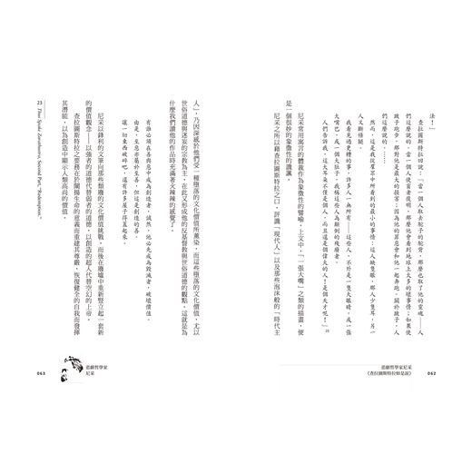 尼采的影響是澎湃而多面的,正因此,對於他的讚譽與指責也便交相飛來。當希特勒把尼采整套著作作為賀禮送給墨索里尼(Mussolini)時,尼采的聲名高峯迭起,而他的學說被曲解也隨著到達了最高潮。此後,一般人對他學說中的重要觀念均產生極大的誤解:納粹(Nazi)故意歪曲他的思想,用他作為發動霸權爭奪戰的代言人,於是,美國的杜威(Dewey)、法國的柏格森(Bergson),以及英國的羅素(Russell)和《查特萊夫人的情人》(Lady Chatterley's Lover)的作者勞倫斯(D. H. Lawrence),通通起來駁斥尼采的思想。有些因自己思想出發點的不同而抨擊他;有些是基於愛國心的政治宣傳而誣蔑他。然而英美法思想家的謾罵,一如德國人的歌頌——都是出於斷章取義。斷章取義的詞句往往和尼采的原意完全相反。他們的曲解和誤解,使得生前飽受冷漠的尼采,死後卻一直被熱烘著。