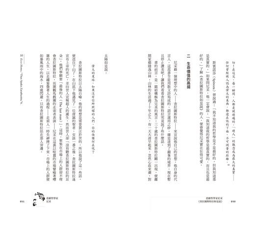在一八六五年的冬季,有一天,尼采偶爾在一家舊書店買到叔本華的巨著《意志和觀念的世界》(Die Welt aIs Wille und Vorstellung),他立刻被這位已逝六年的憂鬱智者迷住了,他狂熱地喊著:「我發現了一面鏡子,在這裏面,我看到世界、人生和自己的個性被描述得驚人的宏壯。」他咀嚼著這本書的每句話每個字,費了十四天的功夫,不分日夜,一口氣就讀完了。