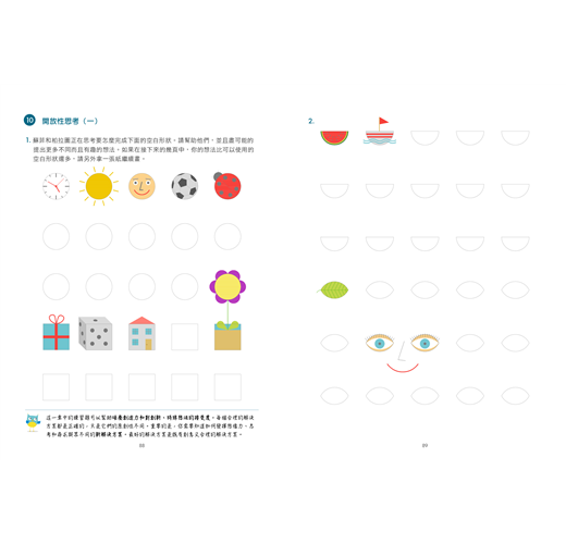 ◎ 藉由挑戰各種聚斂性思考與擴散性思考的練習題,激發創造力和開放性思考的能力。
