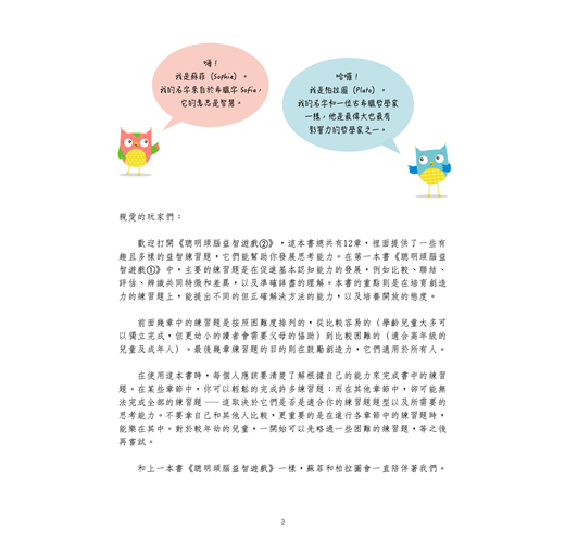 ★ 貓頭鷹蘇菲和柏拉圖同樣會為大家解釋每一章腦力訓練題型的目的與多元智能的關聯。