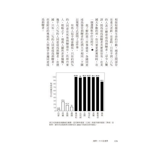 艾瑞克・J・強森是決策研究領域的頂尖權威,曾與諾貝爾經濟學獎得主理查.塞勒一起出版著作,並與康納曼合作。在行為經濟學的相關文章中,都會提到他一項很著名的研究:各國的器官捐贈率完全取決於意願調查的「預設選項」設定。它也影響了新加坡、阿根廷、英格蘭、荷蘭、加拿大、蘇格蘭等地修法,改變器官捐贈政策。