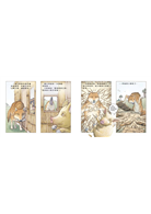但他亦不受「無字」框架侷限,例如《豬頭三兄弟》這本繪本,便出現了許多對話。有趣的是,文字的出現完全沒有破壞他的創作準則,圖像仍是推進故事的主角,文字則以漫畫式的對話框融入畫面。讀者閱讀時,各個角色彷彿已突破書頁,在和彼此、甚至和讀者說話呢!這點更完美呼應此書打破故事書框架的企圖,因而成為他的經典創作。