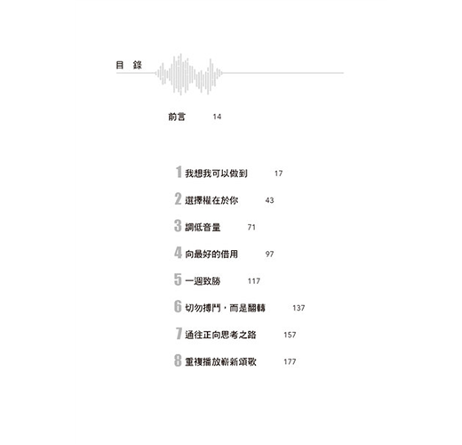 「是否真有可能停止過度思考、增加你的自信,以及實際完成你夢寐以求的目標?喬恩.阿考夫證明了我們可以做到這一點。本書就像是夢想中的混音錄音帶,其中配合著具體可行的建議、敏銳的見解和搞笑風趣的軼聞趣事,會讓你忍不住想倒回去再重新聽一次⋯⋯這次要開到最大音量。」