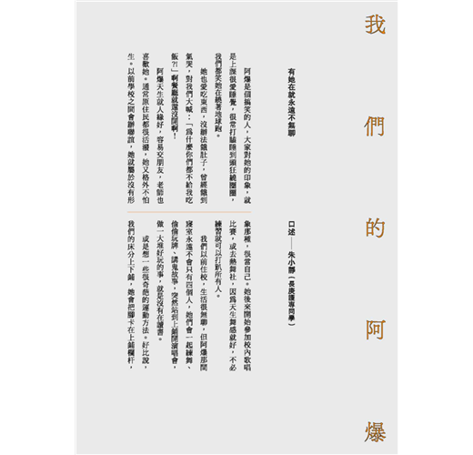 回顧阿爆的生命經歷,每一個階段恰巧都像沉浸、交錯、融合的實境秀,對她來說,人生的每一步都是選擇,沒有標準答案,人所能做的,就是往前走吧!