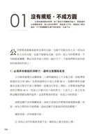 我們在這本書中,條列出身為夾心主管所必備的管理法則,讓每個坐上管理階層的讀者,能夠更理解與掌握管理的各種技巧、執行方式,能夠更懂得善加運用重要的管理關鍵,掌握正確的管理方法,讓左右為難的惡夢遠離自己。