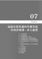 本書定位為作業系統的進階篇,我們把本書給分成三大部分,第一章到第三章的內容主要是加強8086 CPU的概論,第四章到第九章的內容主要是從組合語言邁向作業系統的初步暖身,希望各位能循序漸進了解作業系統,奠定基礎,邁向專業的程式設計師之路。