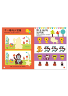 貼貼紙:每頁皆有設計黏貼處,有超多圖案豐富又可愛的貼紙,訓練孩子透過觀察形狀的變化,將貼紙貼上,並且在貼貼紙的過程,訓練孩子使用手指。