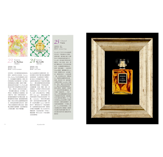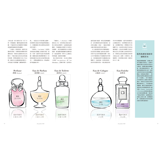 「教人愛不釋手的香水入門秘笈。淺談香水分類、歷史源流、傳奇軼事、專業詞彙…… 看罷便知香水純非液體一瓶;用對了,醉人於無聲,殺人於無形。」