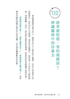 受什麼樣的人吸引,映照出我們當下的渴望。書中集結24篇陪談故事,從言行的冷暴力、權力的不對等,到原生家庭的影響……為你釐清關係裡的痛點。