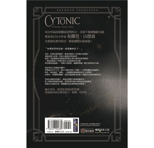 相關著作:《颶光典籍四部曲:戰爭節奏.上冊》《颶光典籍四部曲:戰爭節奏.下冊》《無名之子》《無垠祕典(典藏精裝版)》《無垠祕典(作者親簽限量典藏精裝版)》《天防者II:星界》《迷霧之子二部曲:昇華之井(十周年紀念典藏限量精裝版)》《迷霧之子終部曲:永世英雄(十周年紀念典藏限量精裝版)》《迷霧之子首部曲:最後帝國(十周年紀念典藏限量精裝版)》《颶光典籍三部曲:引誓之劍.下冊》《颶光典籍三部曲:引誓之劍.上冊》《天防者》《迷霧之子系列-執法鎔金:悼環》《迷霧之子-執法鎔金:自影》《迷霧之子-執法鎔金:自影(首刷限量金屬之子特別版)》《軍團:布蘭登.山德森精選集II(限量作者簽名燙銀版)》《審判者傳奇3:禍星(完結篇)》《諸神之城:伊嵐翠(十周年紀念全新修訂版)》《諸神之城:伊嵐翠(十周年紀念典藏限量精裝版)》《颶光典籍二部曲:燦軍箴言.上冊》《颶光典籍二部曲:燦軍箴言.下冊》《審判者傳奇2:熾焰》《無盡之劍》《無盡之劍(限量精裝紀念版)(拆封不退)》《時光之輪14最終部:光明回憶(下)》《審判者傳奇:鋼鐵心》《陣學師:亞米帝斯學院》《時光之輪12末日風暴(上)》《時光之輪12末日風暴(下)》《皇帝魂:布蘭登.山德森精選集》《颶光典籍首部曲:王者之路.下冊》《颶光典籍首部曲:王者之路.上冊》《迷霧之子番外篇:執法鎔金》《迷霧之子終部曲:永世英雄》《諸神之城:伊嵐翠(全新封面)》