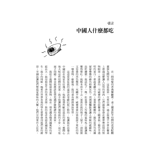 透過「外國視角」的旁徵博引,我們也將看見自己身在其中卻從未深究的飲食典故,像是商朝的名相伊尹以烹調的火候比喻治國、性格激烈的屈原在〈楚辭‧招魂〉對料理方式細膩的描寫、清代名詩人袁枚的飲食文學名著《隨園食單》等,都是她信手捻來的古人軼事。本書每個章節都附有相關飲食筆記與食譜,帶您作出書中讀到的好味道。