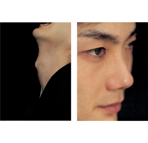 不過,像我這樣的脖子會帶給觀眾怎樣的印象呢?大概就是從腰部向上延伸的一條直線吧。演員的形體雖然因為裝束而凹凸起伏,但是從天上彷彿有條線將身體吊起來所產生的緊張感,反而與演員自身的重力相互抗衡,形成所扮演的角色的重量與存在感。這樣的平衡感正是我們這個世界的寫實主義,也是一種理想。然而現實世界中,人的脖子無法保持穩定,總會不自覺往前傾,這種不平衡的情況可說司空見慣。