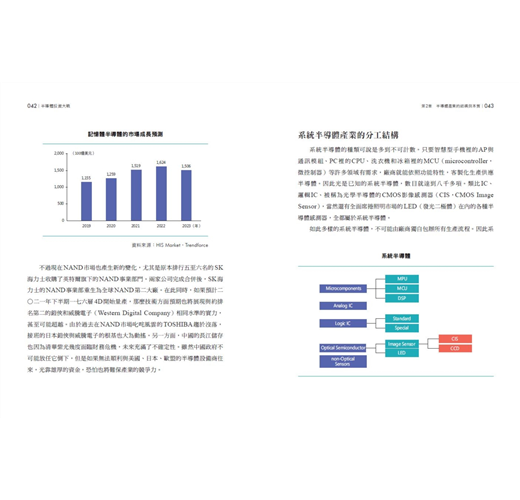 系統半導體的種類可說是多到不可計數。只要智慧型手機裡的AP(應用處理器,Application Processor)與通訊模組、PC裡的CPU(中央處理器,Central Processing Unit)、洗衣機和冰箱裡的MCU(微控制器,microcontroller)等許多領域有需求,廠商就能依照功能特性,客製化生產供應半導體。因此光是已知的系統半導體,數目就達到八千多項。類比IC、邏輯IC、被稱為光學半導體的CMOS影像感測器(CIS, CMOS Image Sensor),當然還有全面席捲照明市場的LED(發光二極體,light-emitt...