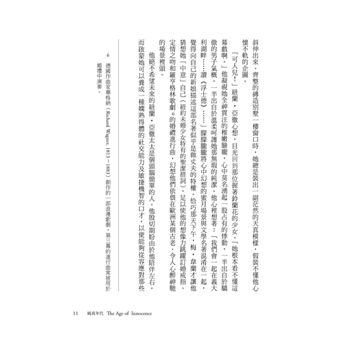 「我一定要搞清楚自己為什麼到了三十歲才開始看伊迪絲.華頓的小說。我擁有這本小說好幾年了,但直到看了原著電影後,深深受到電影旁白吸引,才回頭去看小說層次分明的敘述。我相信,不同生活背景的人對伊迪絲.華頓所描述的上流社會,都將有不同領悟。」