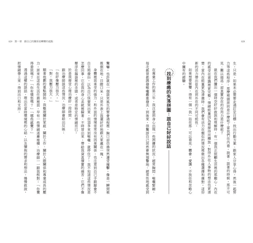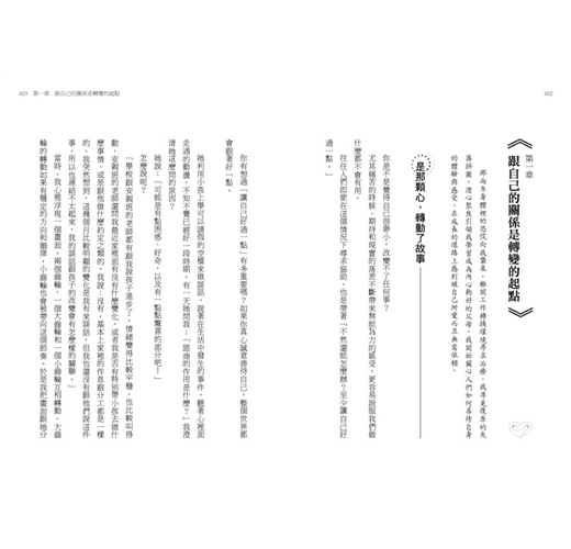 這本書想讓你知道,我們當然可以陪自己療癒,這個療癒之旅不是一個壓力,也不是詛咒,不是「如果你不……就會……。」「如果你要……,必須……。」接觸到內在轉動之流,你會享受自己的創造力,驚訝於你可以帶給自己的愛。